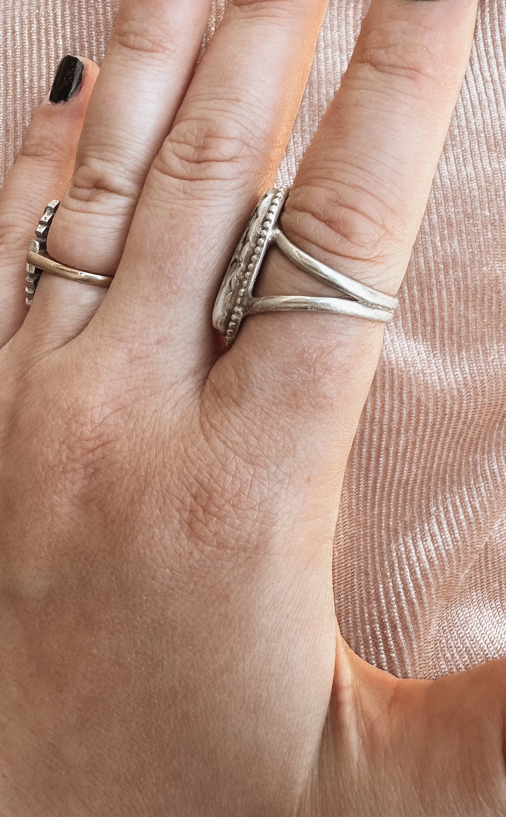 That said, I wear many rings 24/7 and lots of them take turns on different fingers throughout the year as the seasons change and my body fluctuates. I have sizes 5-9 and sometimes the 9 falls off and sometimes I can't get it off. My 8 will rotate to my 7 finger occasionally and my 7.5 to my 8 finger. So what I'm trying to say is buy a lot of rings. 🤍