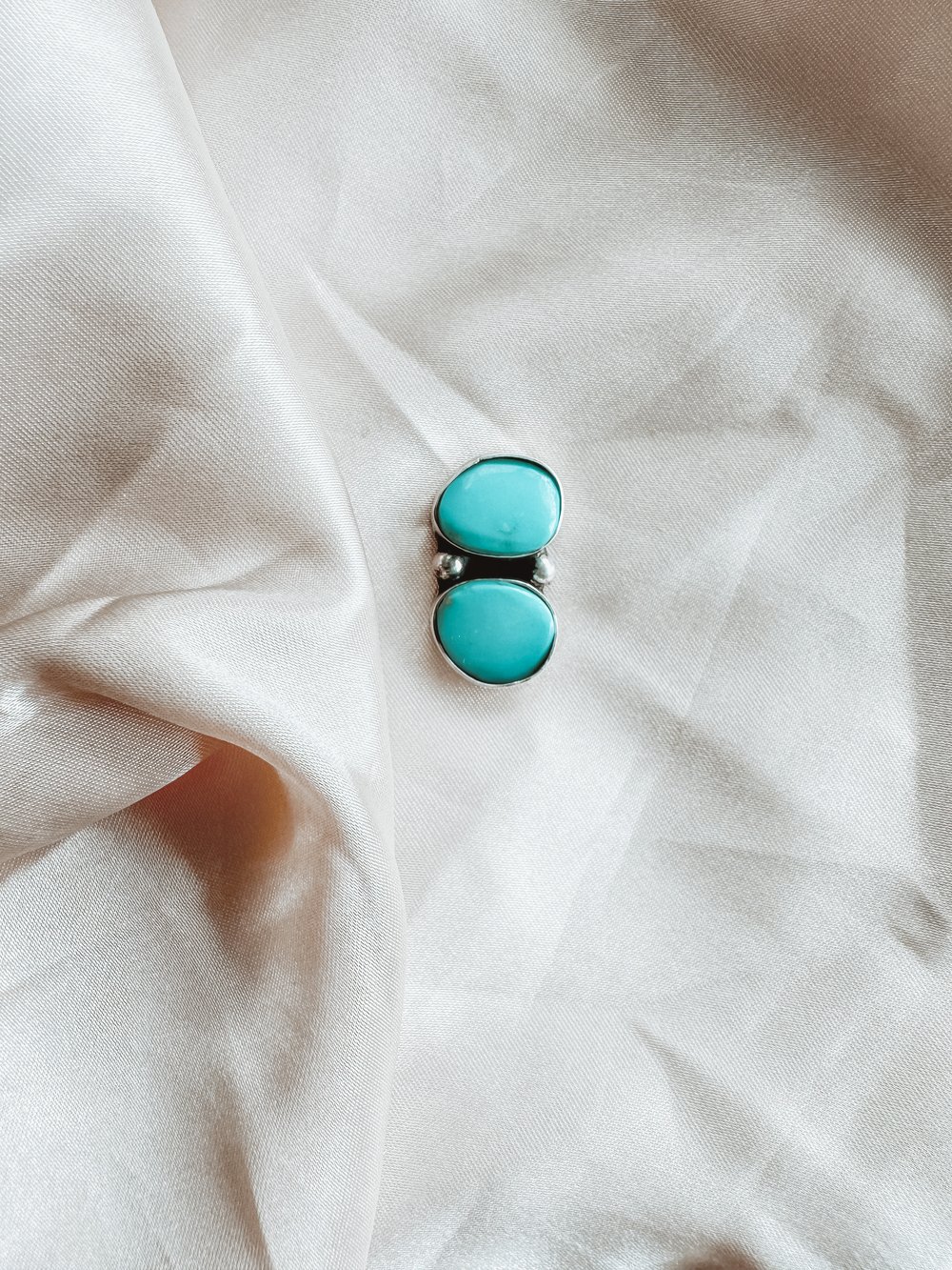 Sterling Silver and Fine silver setting encasing beautiful blue Navajo turquoise.